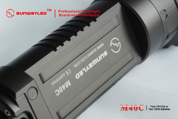 SUNWAYLED M40C is high-output, multi-color, digital sensor magnetic control high-end LED flashlight, specially designed for those who need extremely high performance flashlight for law enforcement, search and hunt etc. Max output reaches as high as 630 lumens with an effective range of 300+ meters; Red and blue beam can be applied to hunt and search in addition. Advanced digital sensor magnetic control system of the industry is adopted and the light can be operated by single hand to select each mode easily; fitted with digital battery indicator lamp for carefree lighting! M40C is the best lighting tool for your work, exploration, search and daily use!
