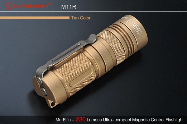 SUNWAYMAN M11R is the latest model of the classic Magnetic Control series. With the length of only 7.5CM, it¡¯s extremely compact and might be the smallest magnetic control flashlight by now. The M11R is a compact flashlight with exquisite design, solid structure, and powerful performance. Powered by one 16340 battery to generate as much as 230 lumens and the incredible M11R manages to fit our Magnetic Control System (MCS) into its ultra-compact frame. Superior circuit, standby current as low as 50¥ìA, far ahead of its competitors. Optimized for use as a backup light for every day carry, outdoor activities and driving, the M11R is also a great keychain light to go with.