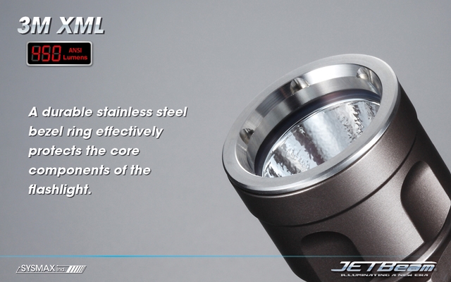 JETBeam 3M is a powerful tactical flashlight specially designed for military, law enforcement, hunting and self-defense. Incorporating with premium CREE XM-L LED, the light has a maximum output of 450 lumens. Intuitive user interface allows rapid switching between two modes. User-defined mode allows users to choose multiple levels of brightness even the frequency of strobe randomly. High strength aero grade aluminum alloy body, HA III Military grade hard anodized and stainless steel crenulated bezel; making 3M XML become an expert in all difficult tasks.