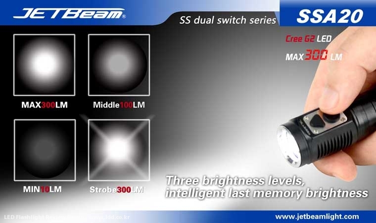 of brightness, strobe, low power warning, etc. The engineers aim to make SSA 20 the smallest, the brightest and the most portable one.